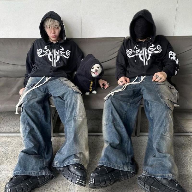Letter Pattern Printed Hoodie Long Zipper Sweater Coat