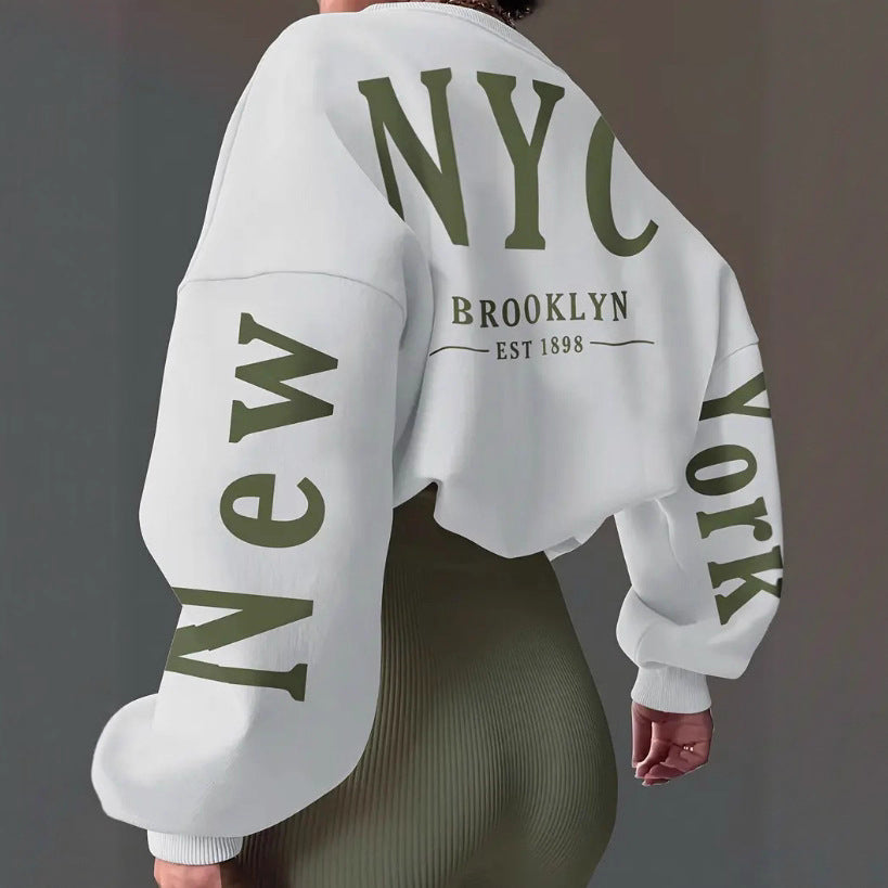 Letter Print Loose Round Neck Sweater