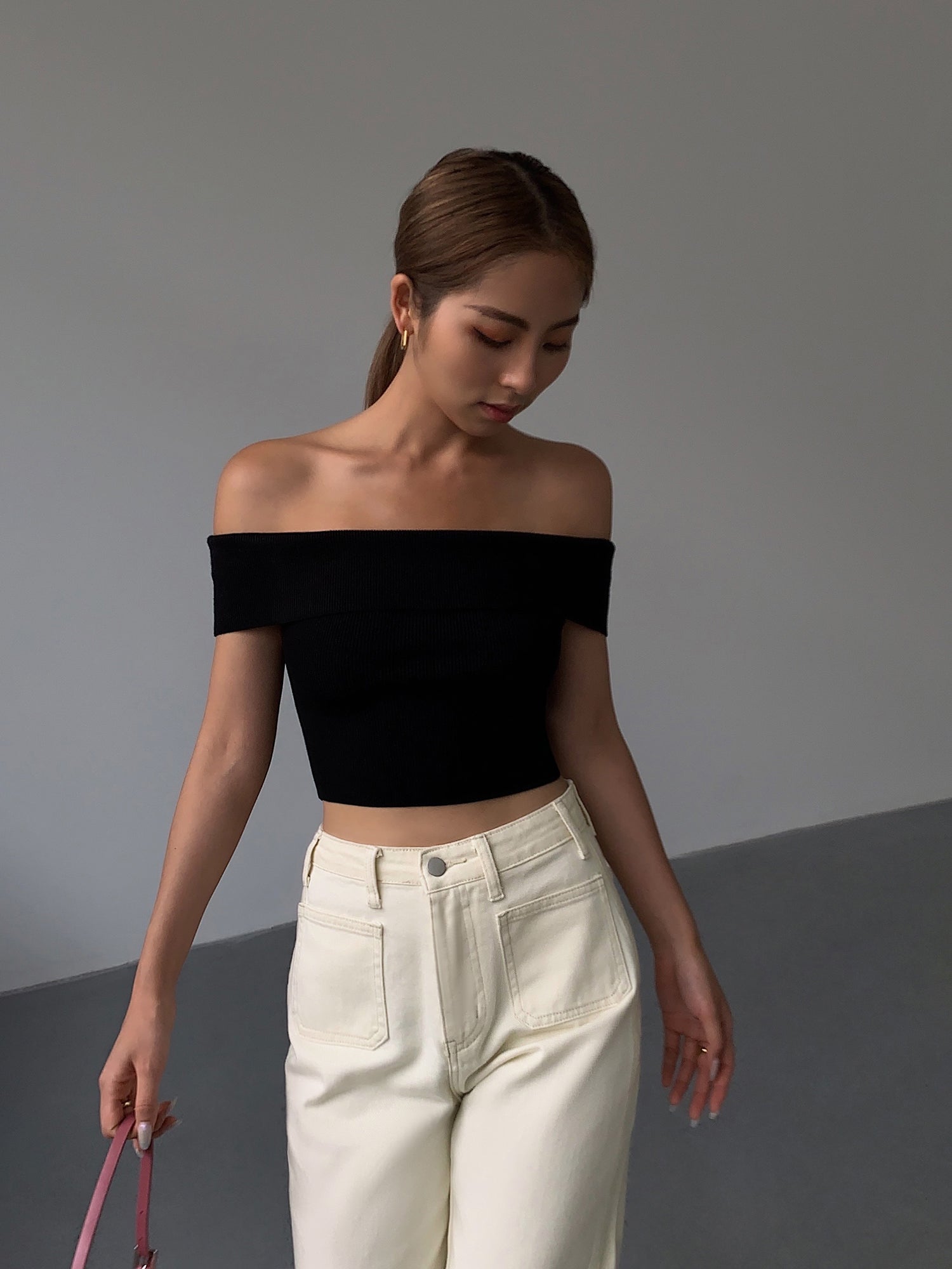 One-shoulder Knitted T-shirt Women's Cropped Crop Top