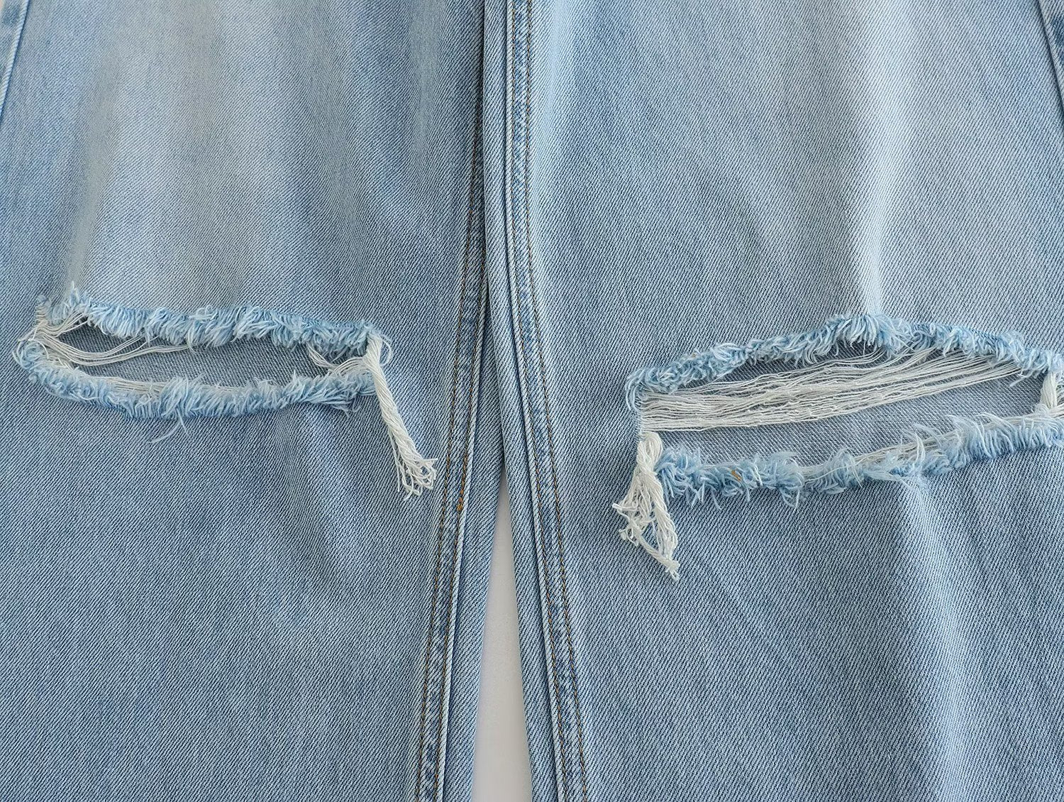 Spring And Summer Women's Perforated Hole Decoration High Waist Wide Leg Jeans