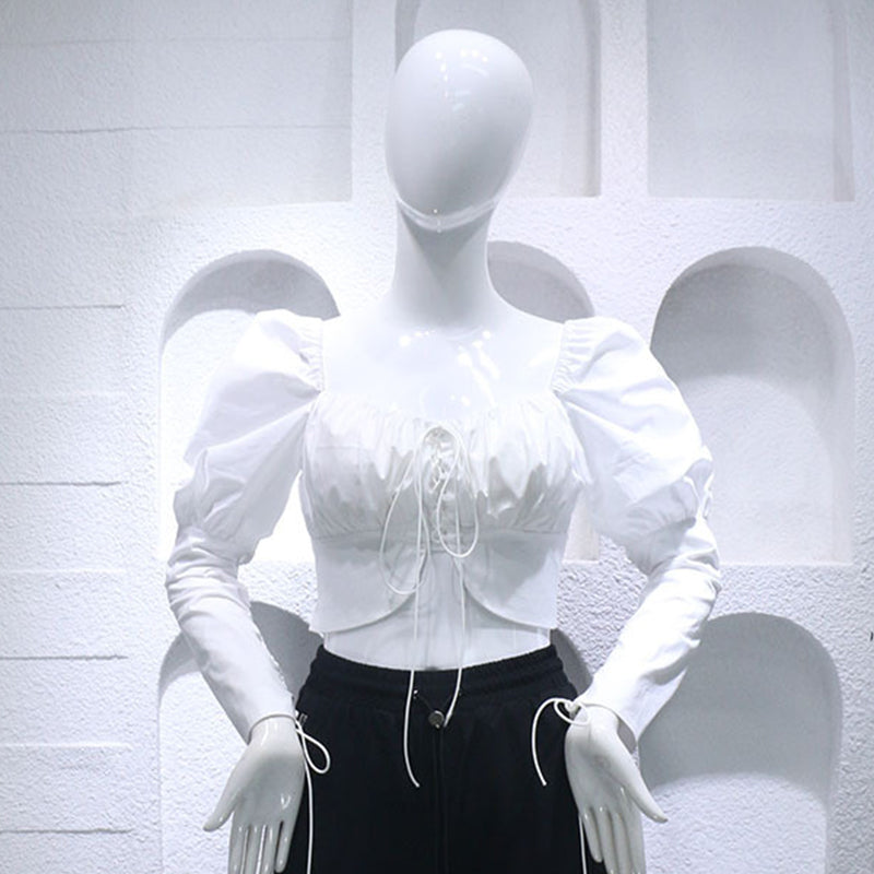 White square neck short crop top